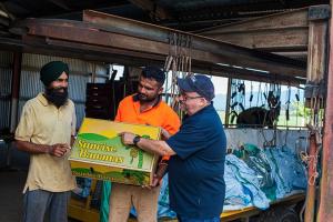 Eight months on and Rahul and Beant are starting to pick and pack the first lot of fruit since the winds from Tropical Cyclone Niran devastated their plantation.